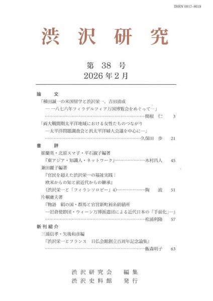 | 概要 | 幅広い渋沢栄一の活動を研究対象とする「渋沢研究会」の紀要(年1回発行)。 |